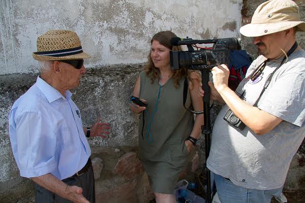 Maria Salicrú y Xulio García entrevistan a Manuel, hermano de uno de los guerrilleros homenajeados. FMGU/Óscar de Marcos