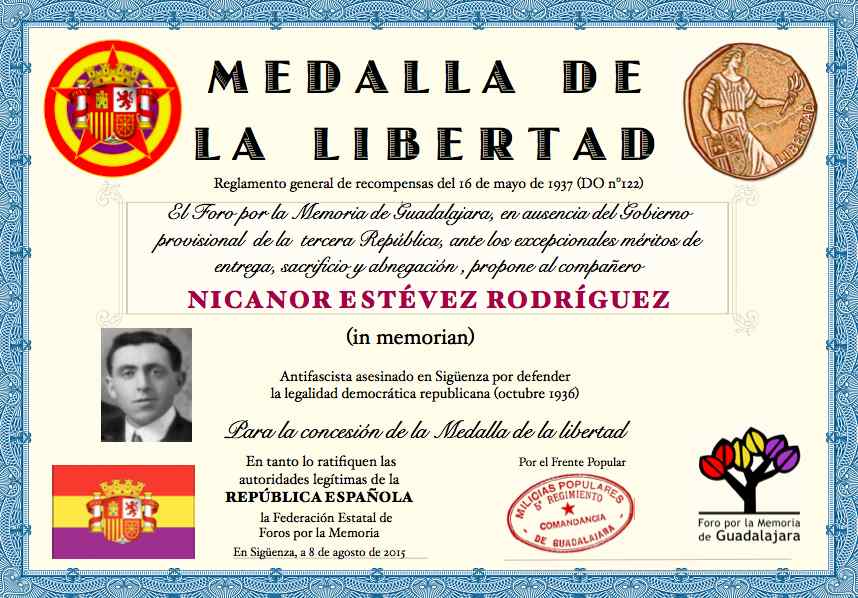 Homenaje a Agustín Estévez Martín (POUM) y a Nicanor Estévez Rodríguez (Frente Popular). Jordi Estévez recoge los Diplomas Honorificos Original size at 858 × 598 Leave a comment Discover more from Memoria Guadalajara Subscribe to get the latest posts sent to your email. Type your email… Subscribe