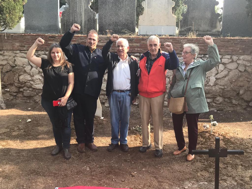 FMGU.- El pasado jueves 10 de octubre de 2019, otro nuevo y emocionado acto tuvo lugar en el cementerio municipal de Guadalajara, con la visita de Vladimiro Relaño y su hermanastra Isabel. Vladimiro es hijo del dirigente comunista de Guadalajara Vicente Relaño Martínez, asesinado en mayo de 1943 y enterrado en una simple fosa sin lápida en el cementerio civil de Guadalajara. Vladi, de 83 años, es hijo tambien de Isabel Sacristán, otra gran luchadora que sufrió a su vez una persecución política con una condena de 12 años y un día, y posterior destierro a Zaragoza, La aberración de las condenas y acusaciones de la maquinaria franquista llegó incluso a decir de ella que era militante de Juventudes Libertarias, siendo como era, simpatizante del PCE.