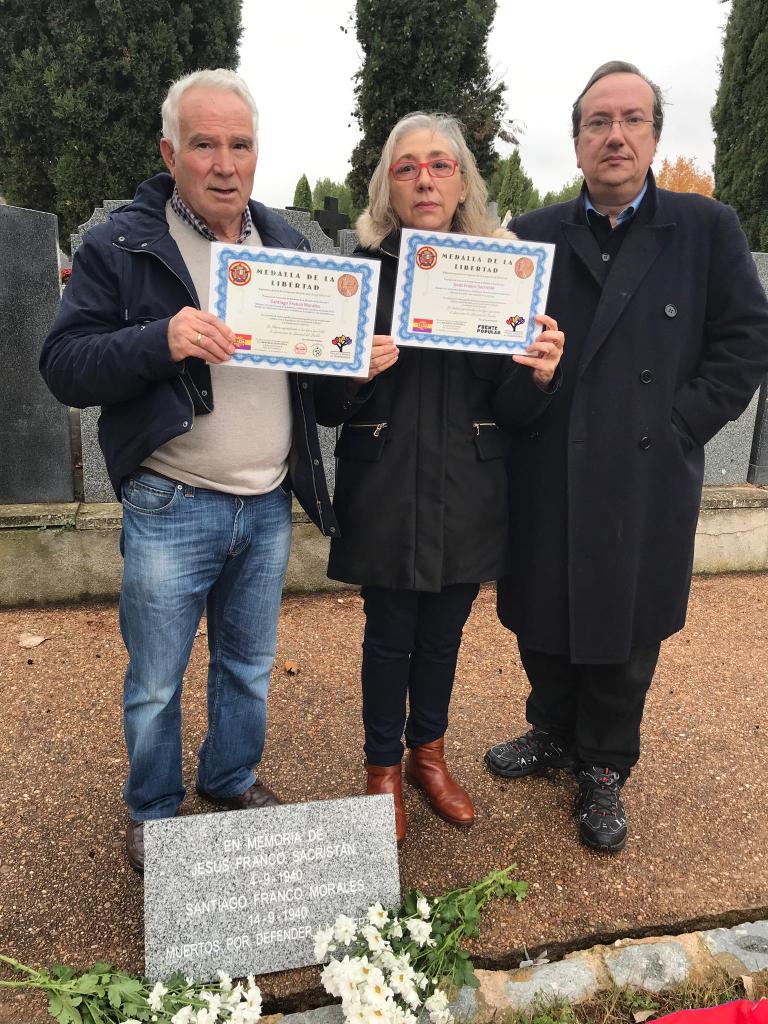 Margarita Franco, familiar de los homenajeados invitó amablemente a asistir a la colocación de la placa a estos dos luchadores al Foro por la Memoria de Guadalajara. Margarita dejó muy clara en la petición al ayuntamiento el que no renuncia a la placa colectiva institucional que fue aprobada en pleno en junio de 2017 y que esperamos sea colocada en esta legislatura, Tras colocar la placa, el Foro por la Memoria estregó un nuevo diploma con la propuesta de la Medalla de la Libertad a los familiares, Hasta el momento se han entregado 66 diplomas, Tras la visita a los lugares de memoria del cementerio, los familiares visitaron la ciudad de Guadalajara y concretamente la Prisión Central de la calle Amparo,
