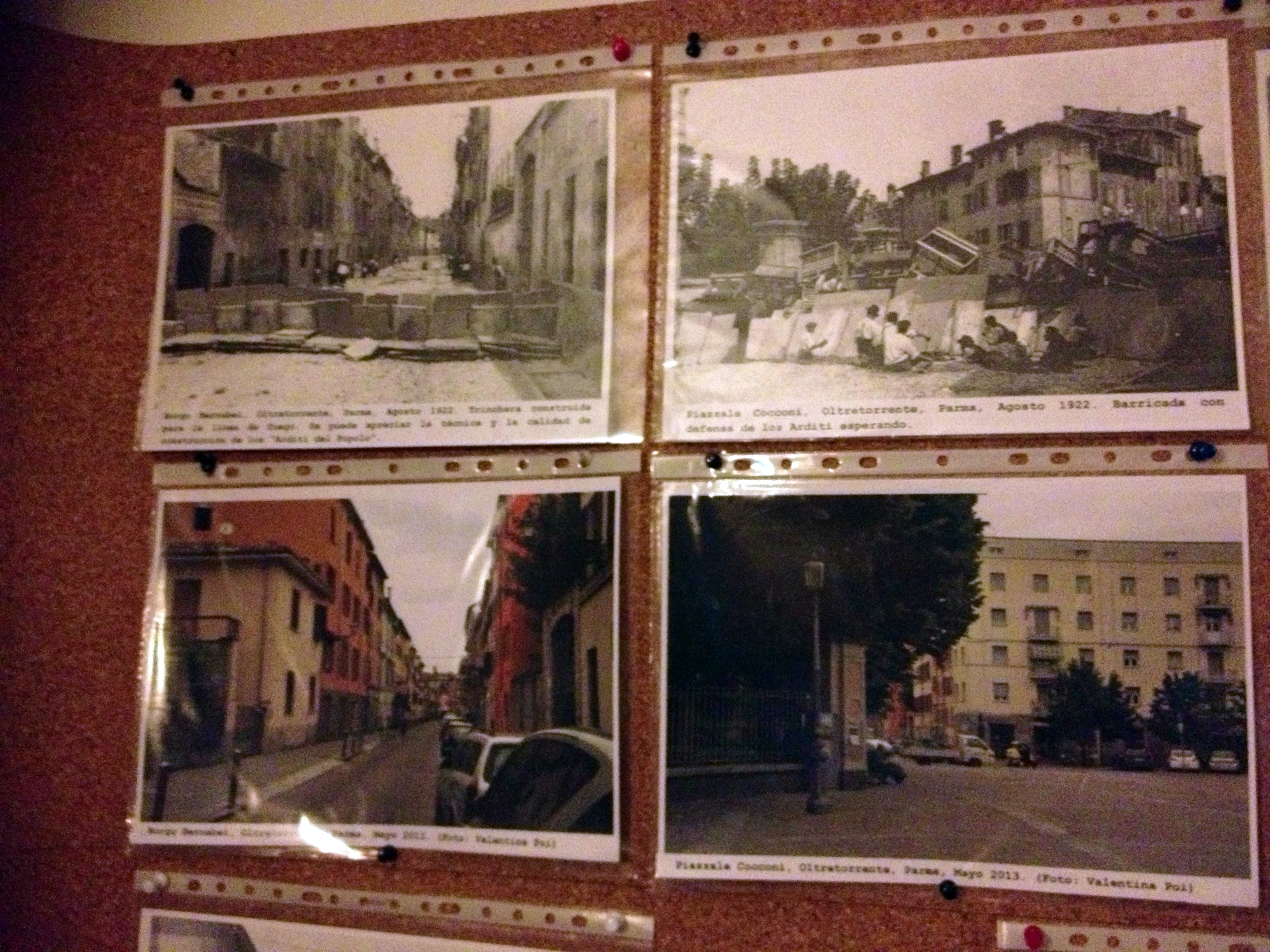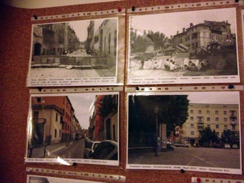 Las barricadas de Parma levantadas por los antifascistas en 1922, en comparación con los mismos lugares en la actualidad. Copyright: Valentina Poi, A Madrid se Muove un’Altra Italia.