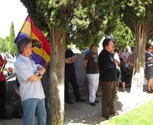 El homenaje de aquellos que están ahora mismo depositando coronas en el monumento de los republicanos, que saludan a la tricolor, levantan el puño y dicen “gracias” en castellano es igual de clamoroso que las ausencias institucionales en este día y en este lugar. Cada cual se retrata con lo que hace y con  lo que no hace.