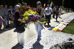 Emilia Cañadas durante la ofrenda floral a las víctimas del franquismo y del nazismo