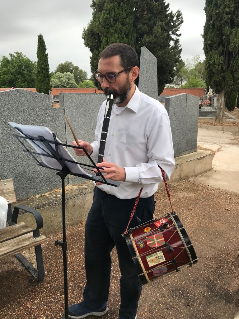 Tras descubrirse la placa del homenajeado, los asistentes del acto hicieron una ofrenda floral al son del txistu de nuestro buen amigo Mikel Castrillo, que tocó la melodía “Agur Jaunak”. El acto contó con la presencia de representantes de grupo de memoria del sindicato CNT , dada la simpatía tanto de Emeterio como sus hermanos por las ideas libertarias. El himno libertario “A las barricadas” y el himno de los soldados vascos sirvió de colofón al acto.